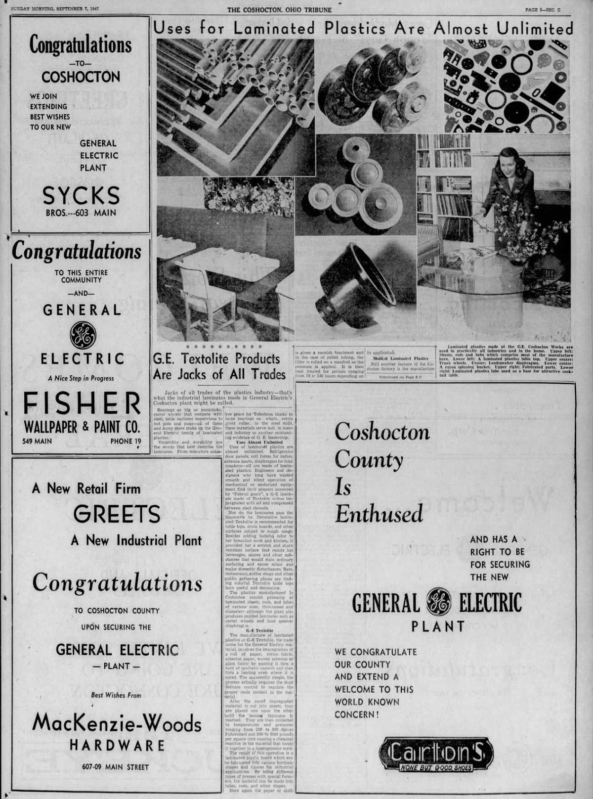 This was manufactured by the Coshocton, OH GE plant on South 2nd street in the 1970s. The plant opened to make laminated plastics under the trade name Textolite, and made various other things over the years including plastic parts for appliances, and raw circuit board.