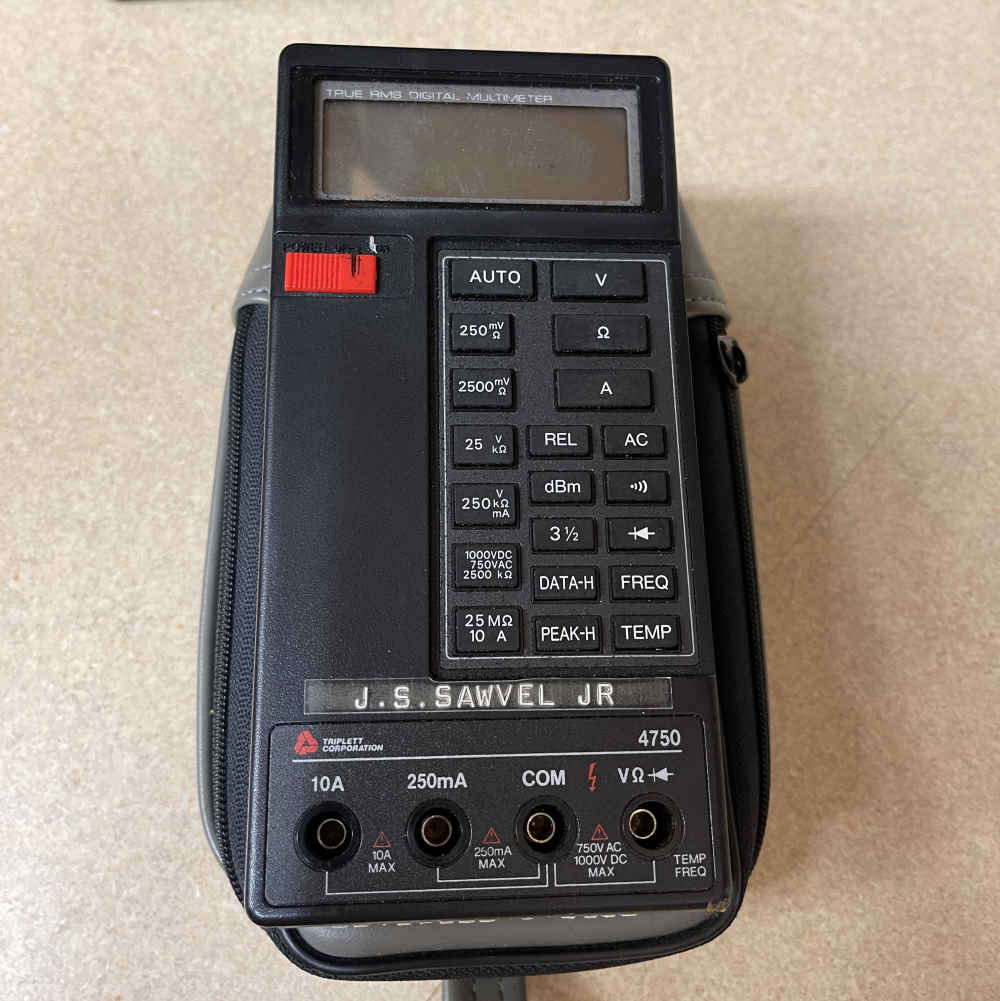 The meters are of particular note, one was an old, old, old unit with a telephone test jack on it. I occasionally have need to test single-line analog jacks, so I offered the guy $10 for it and he took it. The other meter, an Ohio-made Triplett, was a beast of a unit costing $200 when new in 1992. It’s loaded with functions, and has internal relays to isolate and switch inputs. Quite unusual and cool.