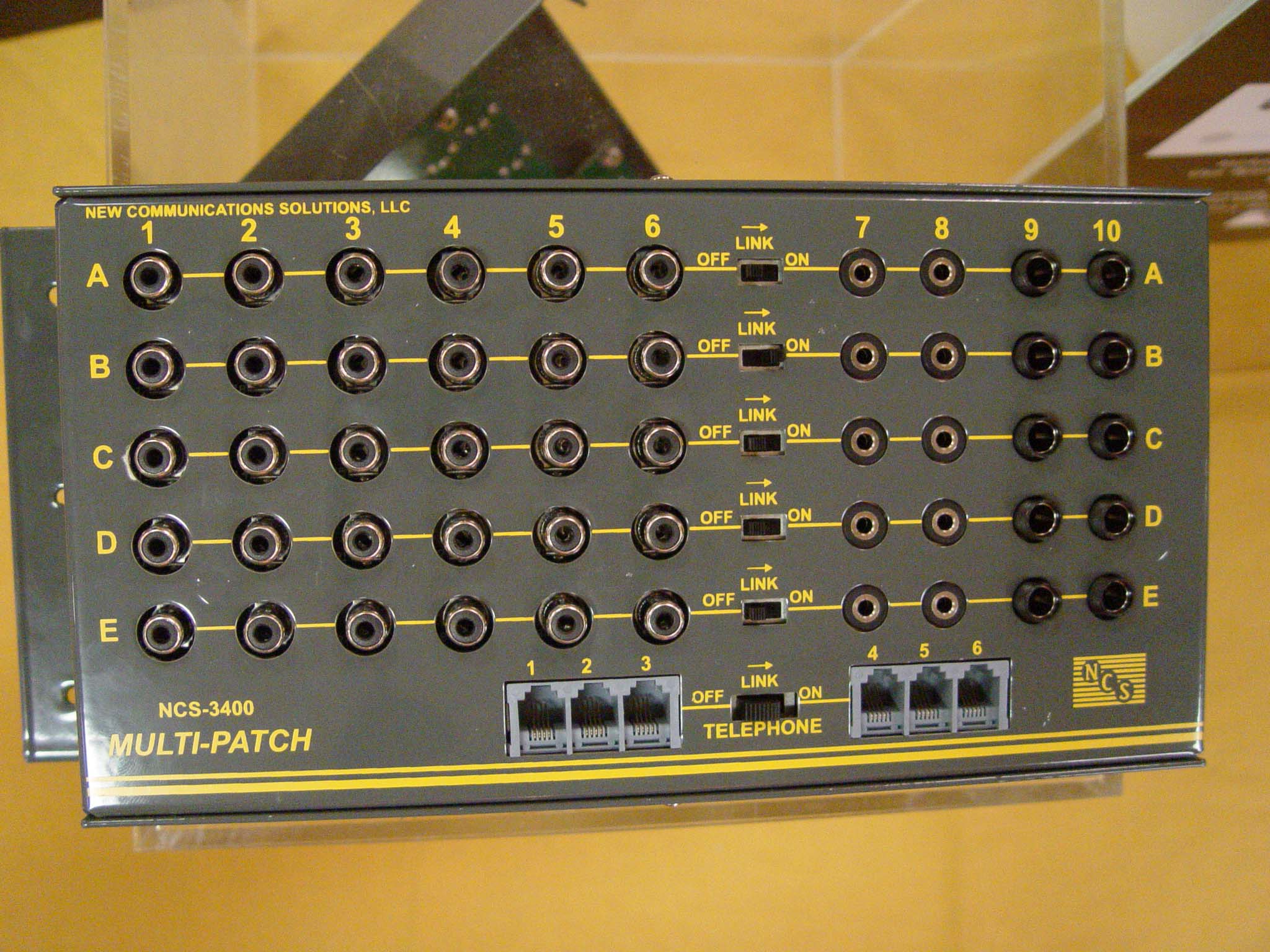A telephone patch panel.