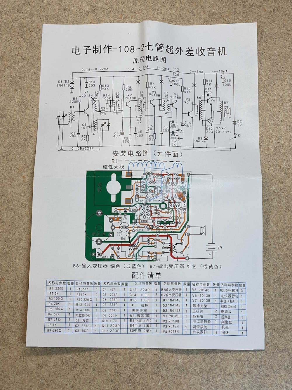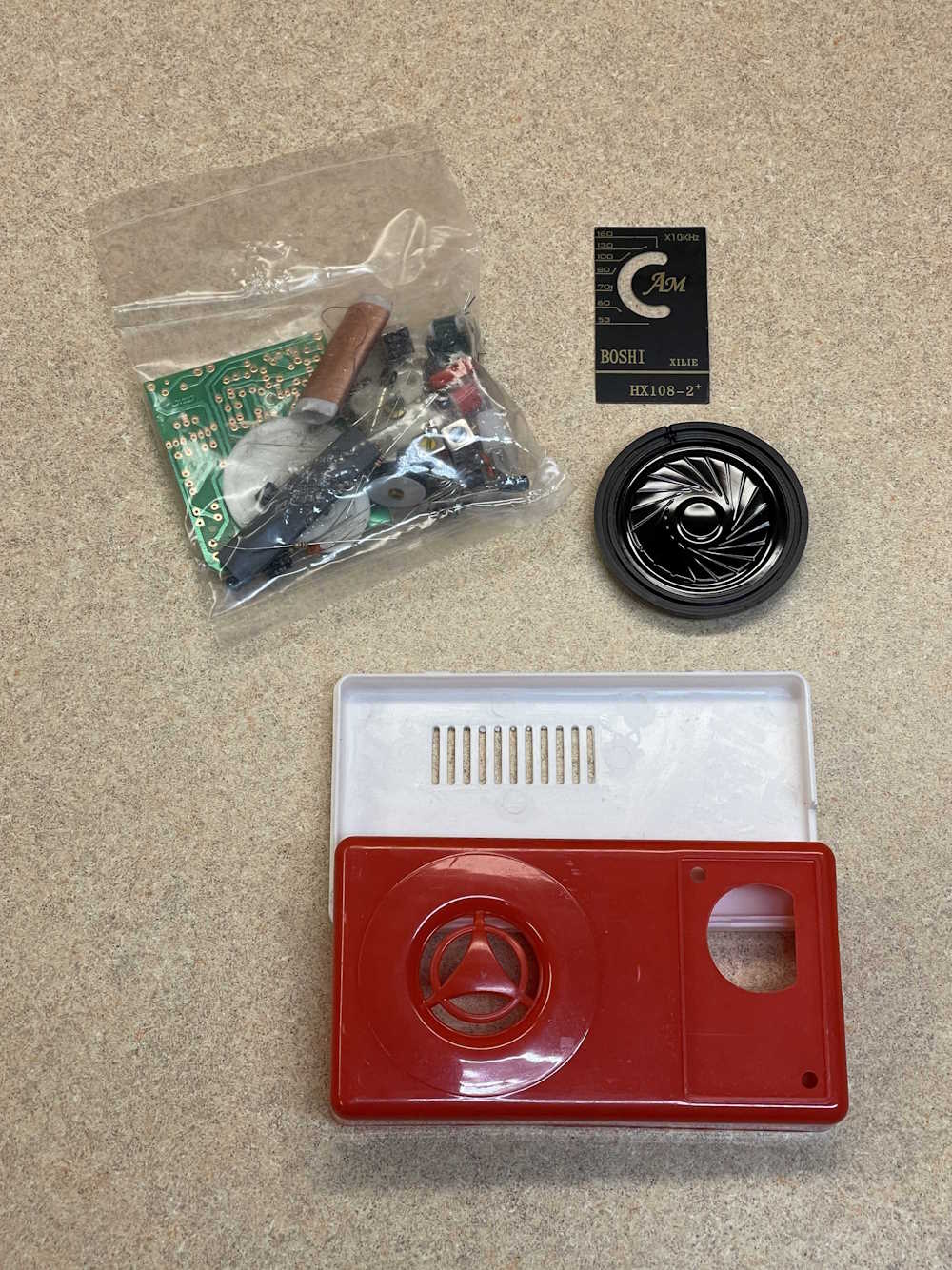 The kit consists of a case, board, parts, and “instructions.” No alignment notes or anything, so I hope this thing is 455Khz…