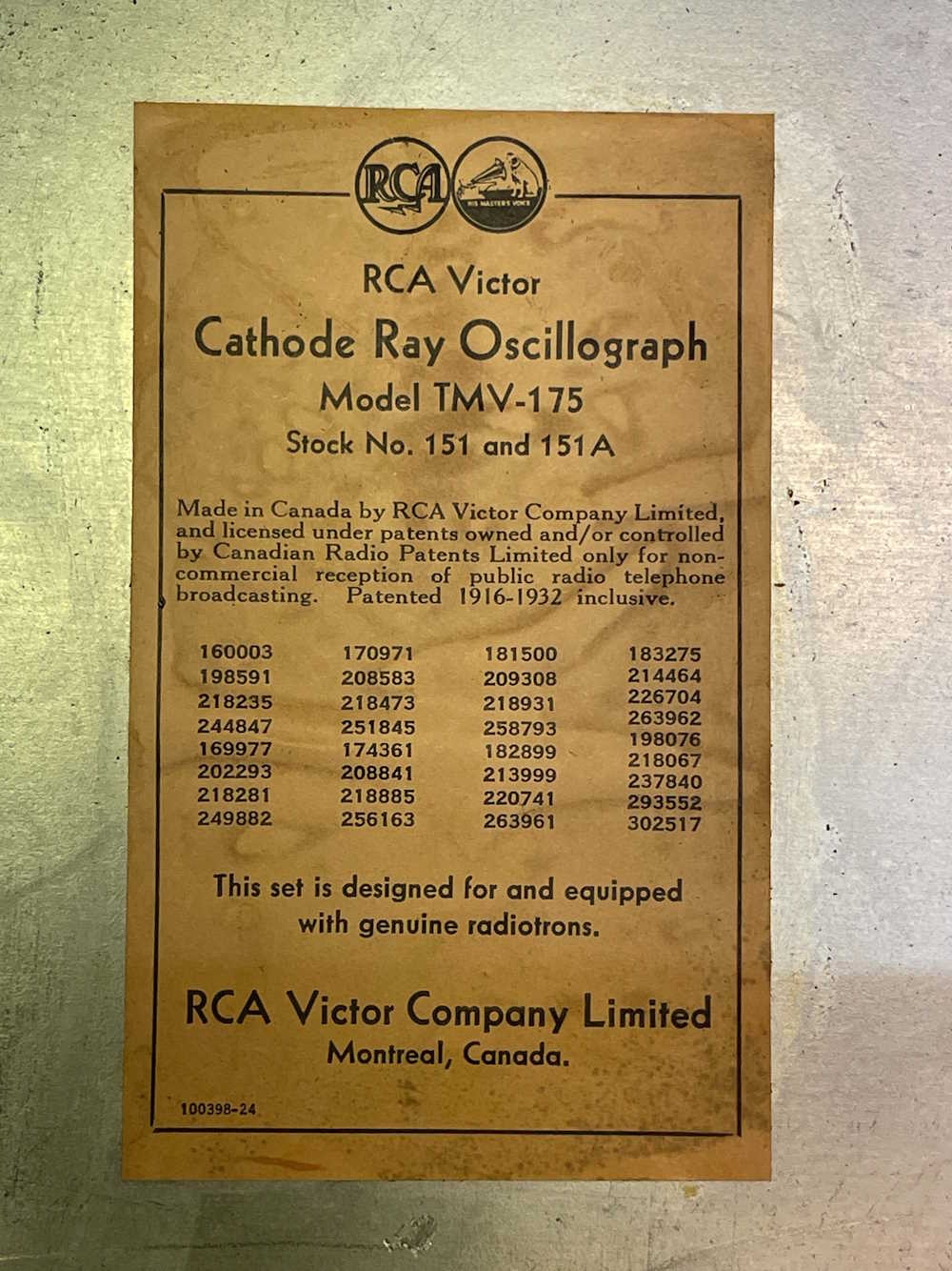 The RCA 151 Oscilloscope