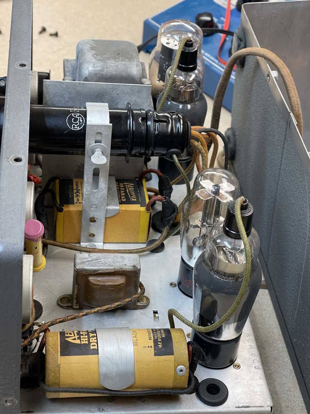 There’s more of those Aerovox capacitors. Maybe that was original? Did RCA just take an off-the-shelf unit and splice in an extra capacitor for the 25Hz model?