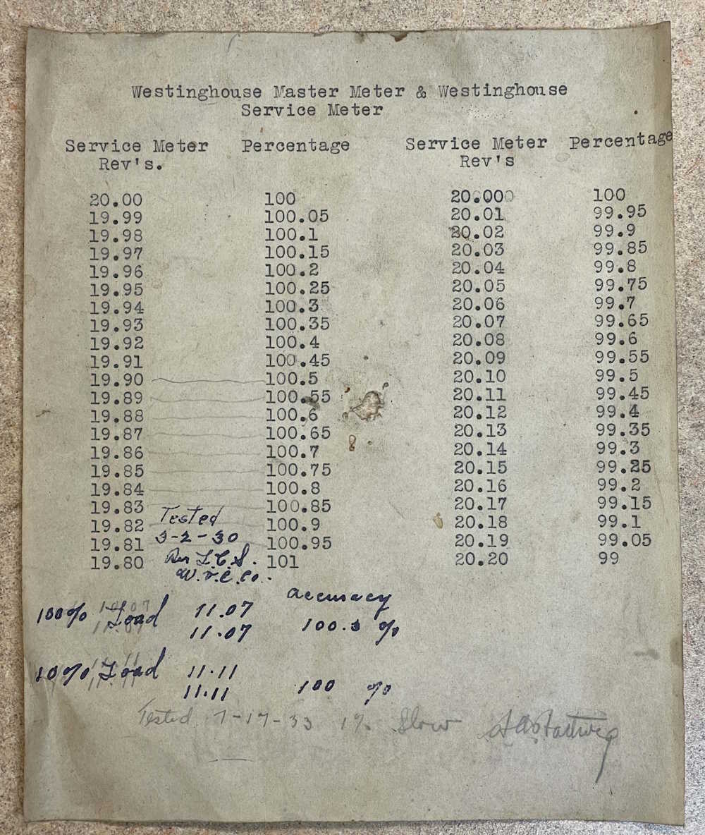 And even more cool? There’s a calibration sheet with notes from 1930 and 1933 on it: