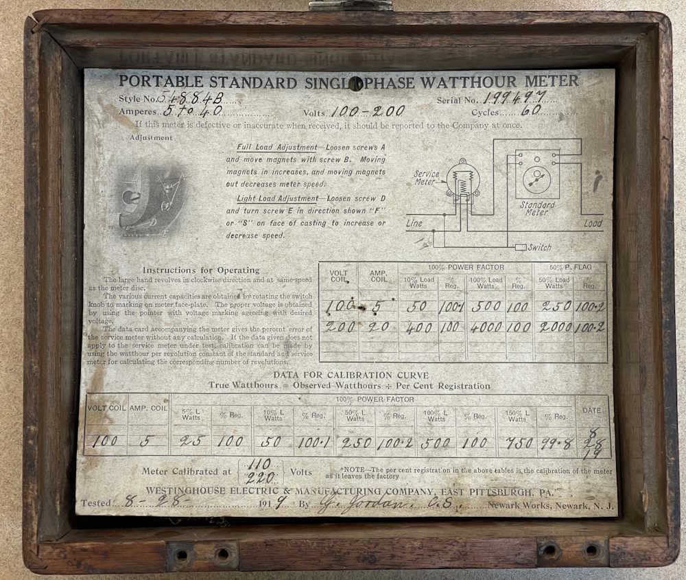 The Westinghouse 54884B Watt-hour Meter Standard.