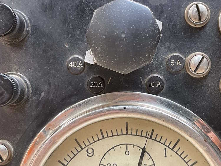 The actual range is selected by a big knob in the middle. There’s no clunk of detents, but the knob has two pointers. They’re lableled “1” and “2” - the knob turns all the way around so I assume that it’s a brush inside the device riding on something that connects a shunt for the current portion of the meter. Not sure at this point, however. I have to assume that the numbers are for the incoming voltage range - but again, not really sure.
