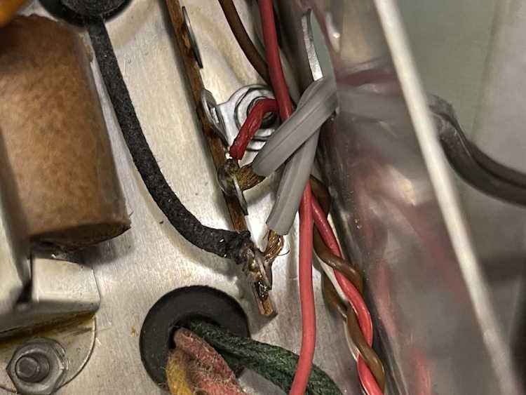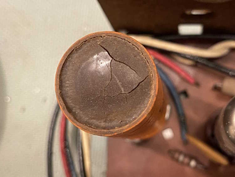 It looks like this double-wafer socket may have some carbon tracking inside of it. Oh fun! That means trying to figure out something to replace it. I have some sockets in stock, we’ll see if there’s one that can be used here.