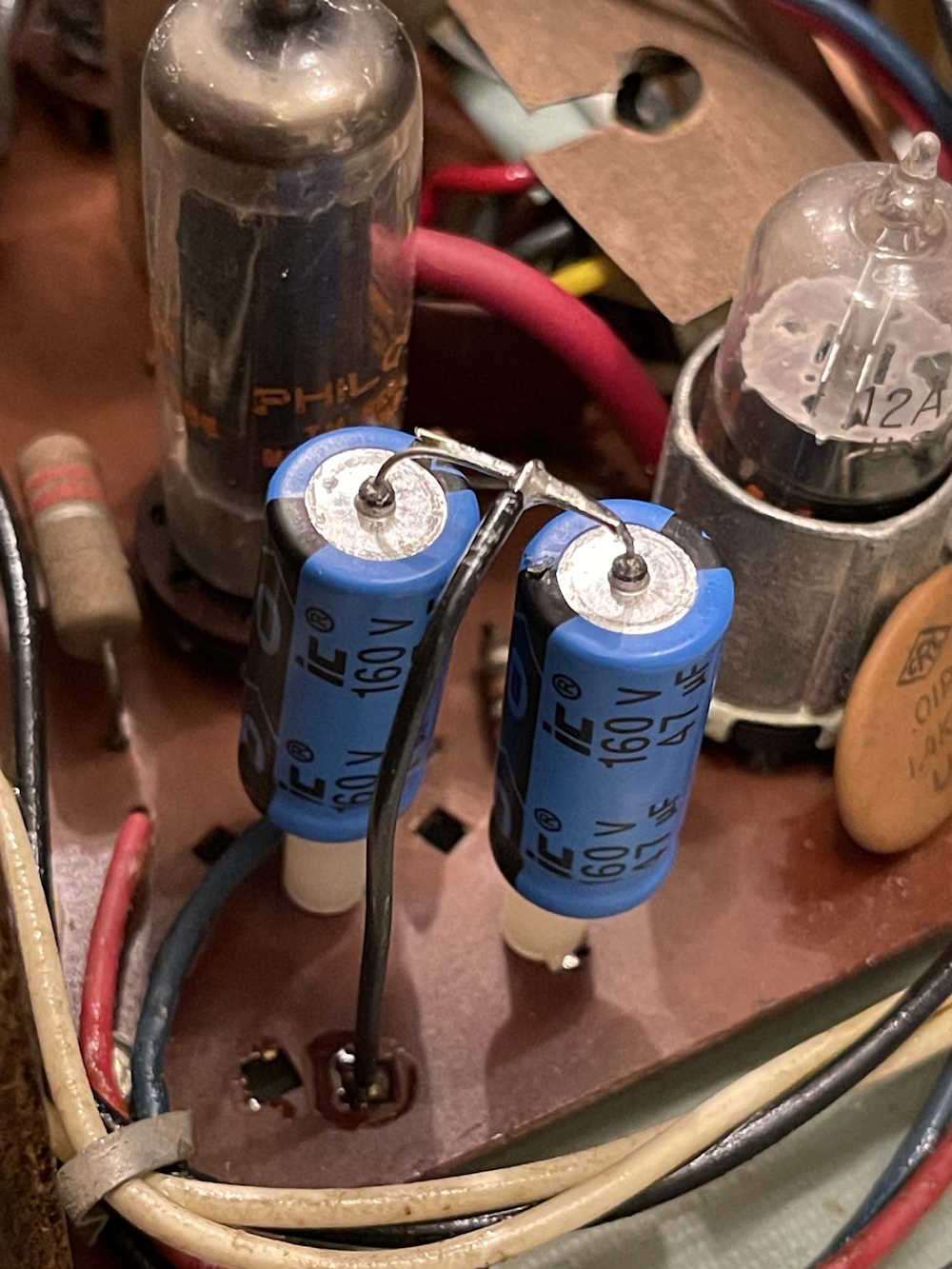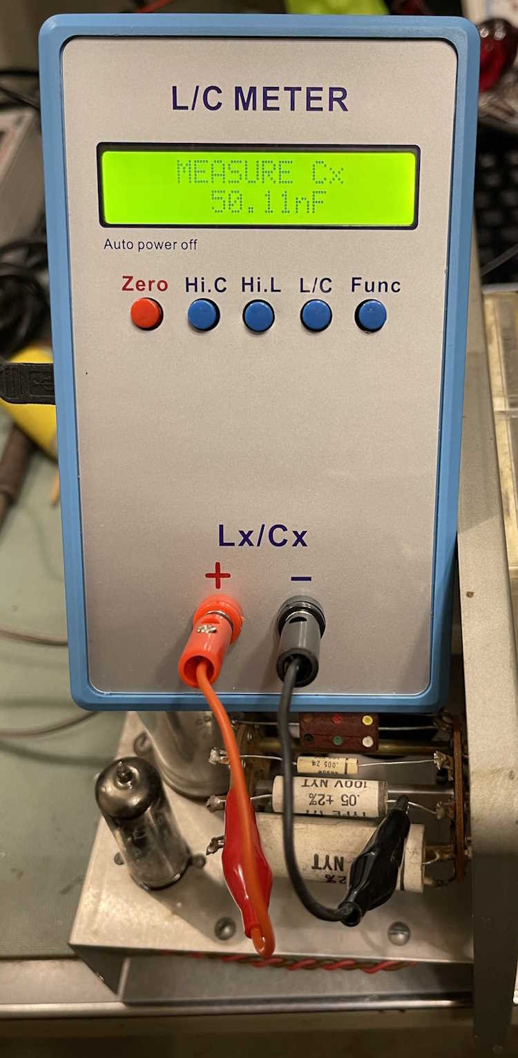 The short answer is nothing. The capacitors in the filter for the oscillator are on point, the output is close enough that it’s probably not worth changing things, and the filters and electrolytics that connect stages aren’t showing any leakage. That’s pretty amazing for a device this old. I decided to do some checks anyway, just to prove the point.