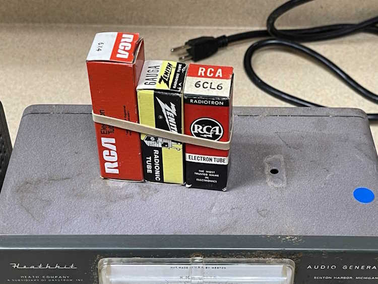 It’s hard to see, but the 6CL6 tube in this one is an RCA, while the other two are Heath branded. That one has been replaced at some point - it’s a cathode follower that provides the input for the oscillator, so we’ll look at that first when it’s on the bench.