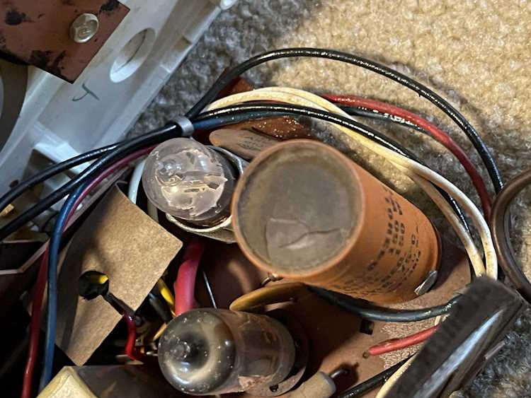 There are 6 tubes in this thing? That can only mean it’s got a tuned RF front end. This thing should be a good performer if it works. But it “Does not warm up?”