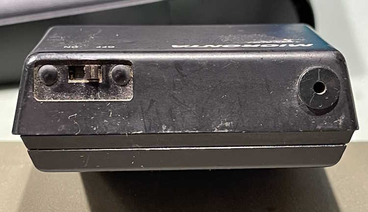 The back has a very dirty on/off switch and a jack for a power adapter. I think that’s one of those old 3/32” phone plugs that companies loved to use before coaxial barrels became popular.