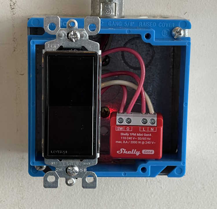 This is called the Shelly 1PM Mini Gen4. (Yeah, they need to work on those names.) It offers both remote switching capability via WIFi, and local switching capability via the “SW” terminal - you simply input the switched line voltage from the original toggle and it takes care of the rest. Other than a slight delay in switching, you notice nothing.