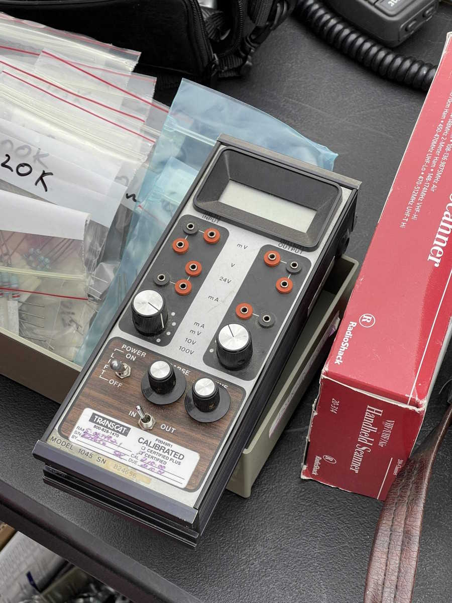 I concentrated mostly on tubes this time around, picking up things I thought I’d need to keep old equipment going. A few odds and ends including an old AC Line meter made it home with me, but by far the largest purchase was a giant HP RF synthesizer that kept the back of my car from blowing away.
