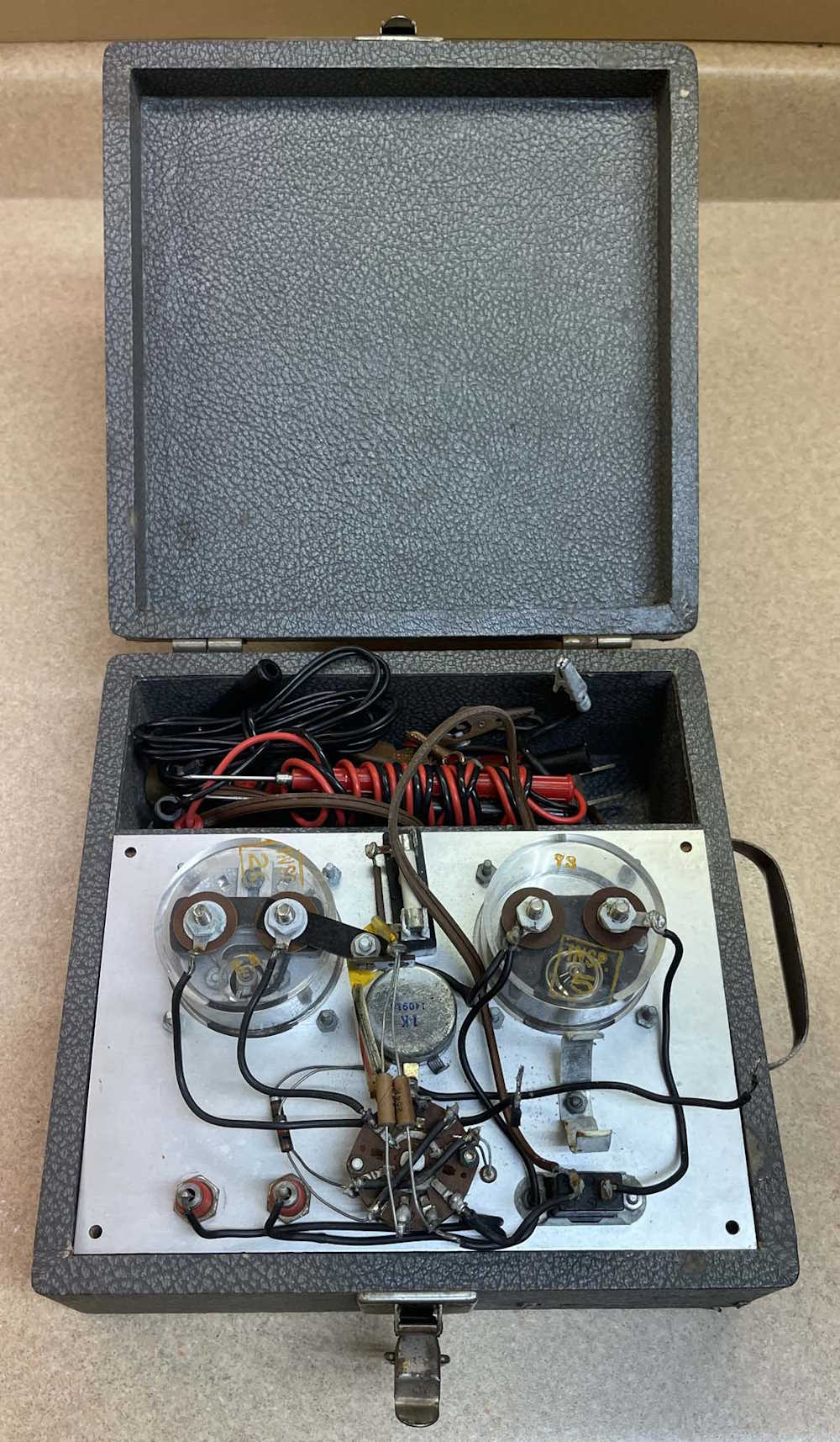 This device came from the 2024 Cuyahoga Falls Hamfest, and was $3. I didn’t really buy it for the test box itself, but more the real copper clips and probes that were in the storage compartment. The device itself was interesting enough (but smells horribly of basement!) that I decided to check it out a little.
