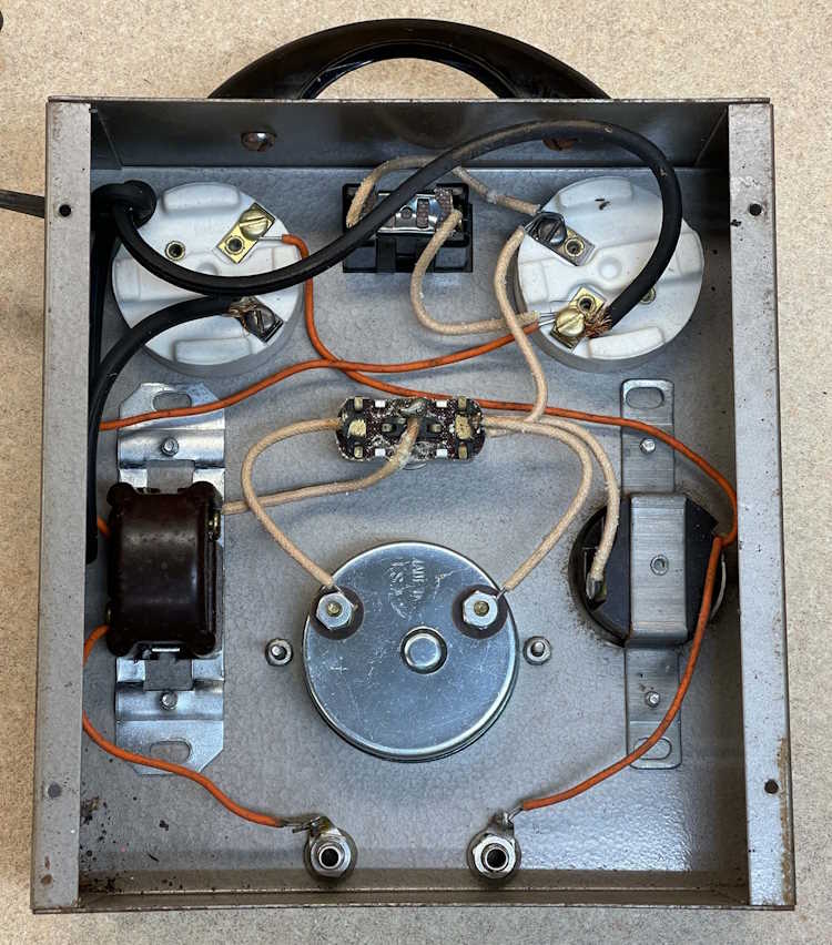 The inside is pretty clean, overall. I can immediately see the cord appears to have been replaced because of the way it’s put on the screw terminals - it’s unlikely the factory would have shipped it all birdcaged out like that. So that’s probably a new(er) cord.