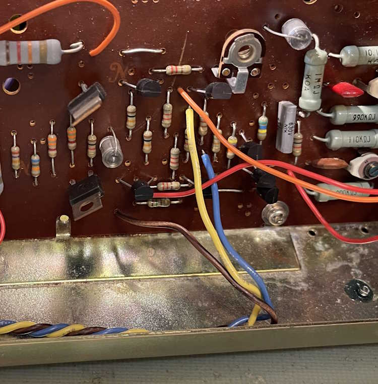 After that, it was just a matter of running them to their destinations. I didn’t solder them down yet because there’s going to be more work to do here in the rectifier section - the lead will need to come off so we can measure draw in order to size the new dropping resistor when the selenium rectifier is replaced.