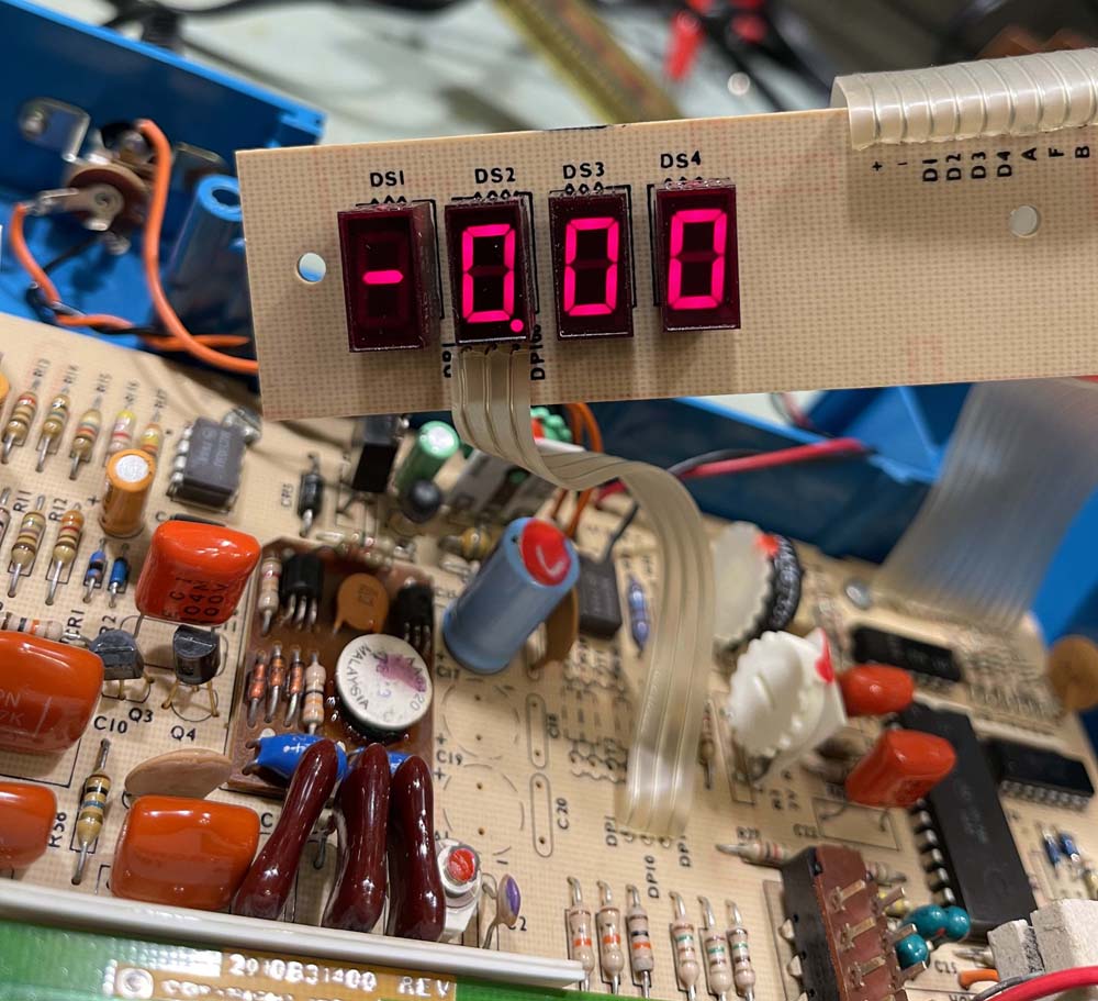One (or both) of those meters is wrong. I’m not sure who, but I’ll take the Sabtronics in to work and check it with our voltage calibrator. As for the display, I have some of the proper Fairchild displays on order from a NOS seller. Those should be here soon, stay tuned!