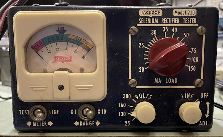 This is a Jackson Model 710 Selenium Rectifier Tester. Made by the Jackson Electrical Instrument Co. of Dayton, Ohio, this specific purpose device only tests Selenium devices. It was cheap and I got it for $1, but the only reason I bought it was that it looks cool. However, we get to use it!