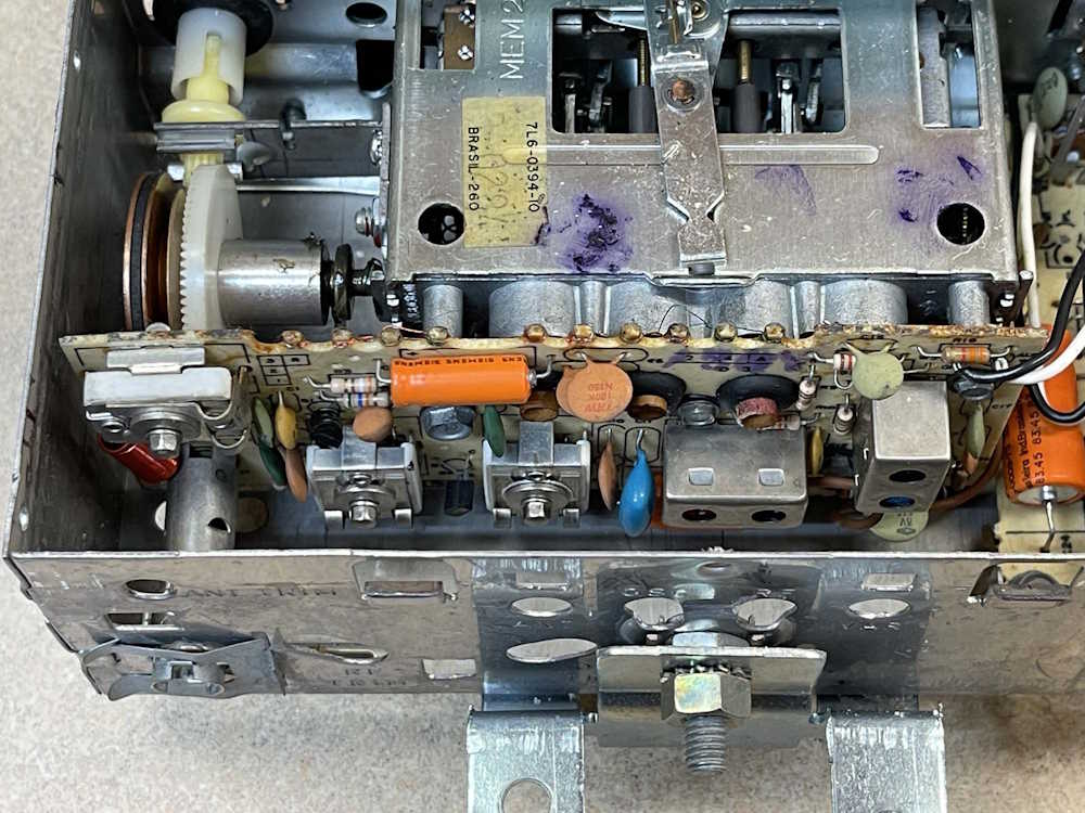 I don’t think this was ever mounted in a vehicle. Even the socket pins look new, there’s no marks that I can see on them, and installing it even once would leave some sort of evidence. Inside is similarly clean, there’s not even any evidence of wear on the tuning assembly.