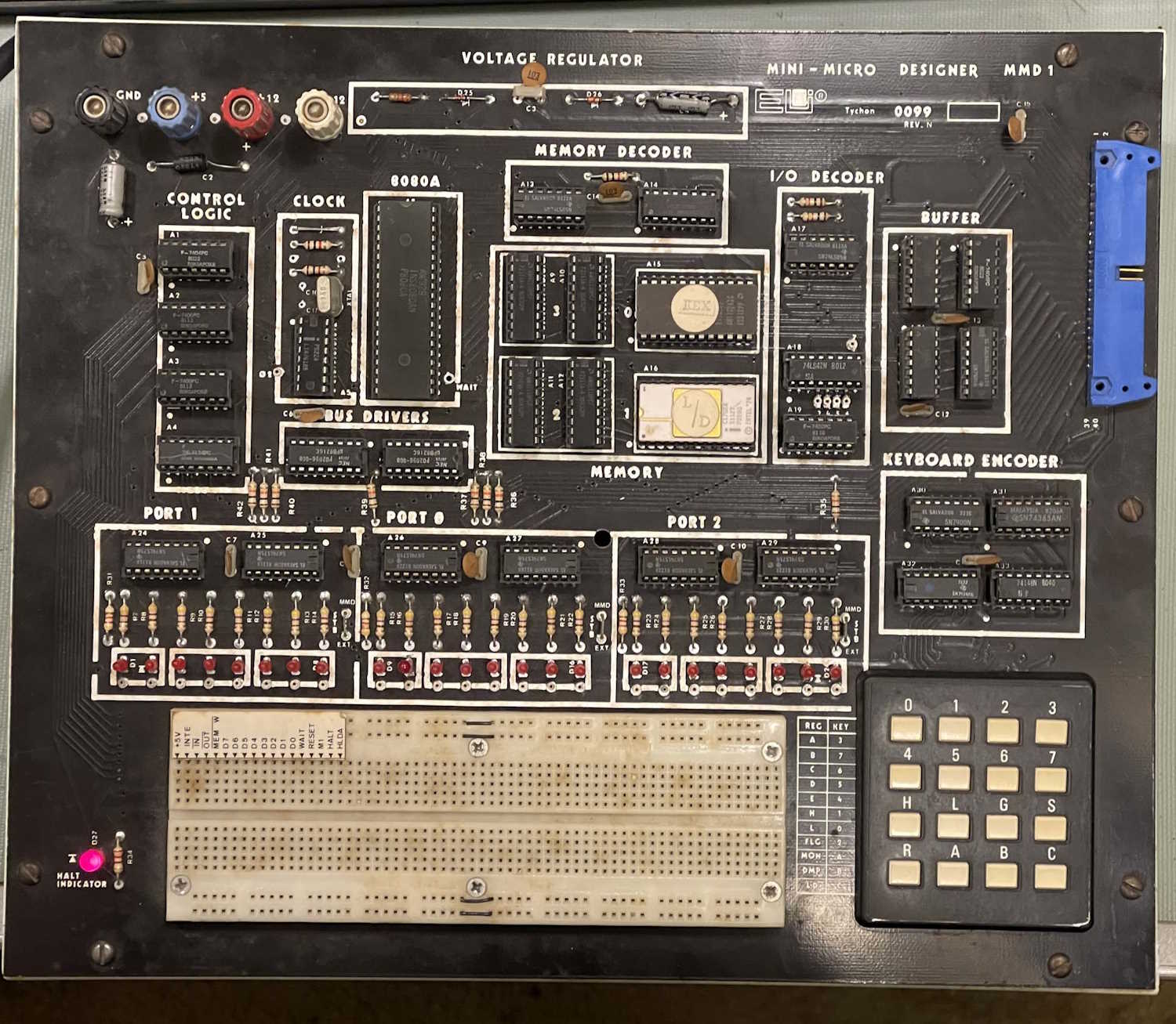 I eventually found an 8224 on a device at a show, and put it in recently. I then realized that, unlike most other trainers, this one has no LED numeric displays! Well… the HALT LED will light and extinguish if I play with the keyboard, so I assume something is going on since it didn’t do that before. I thought about dumping the monitor ROM, but someone has already done that. I also need to investigate the power supply, it has a very loud hum and may need some modernization.