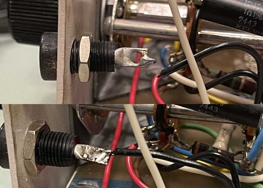 I discarded the broken pieces and looked at the negative jack. Sure enough, the nut was backed off, and that was because the cheap plastic threads on the jack were worn. While it tightened up, one more turn would knock it back. That will have to be replaced if I want to put this into service, but I think where it’s going it will be connected and let set as a monitor device.