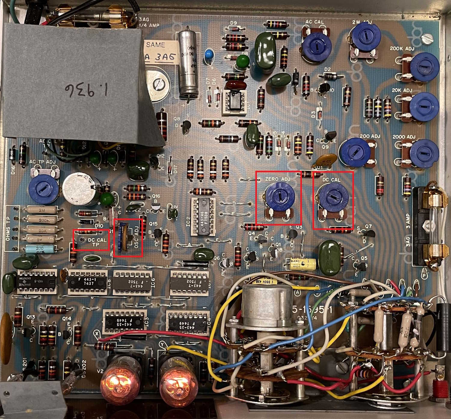 When it’s warmed up, remove the top cover. Start by looking at the paper on the transformer. There’s probably a number written there. Ignore it. That’s the DC CAL voltage as suggested by Heath. It’s wrong.