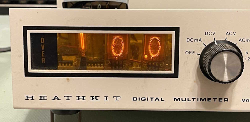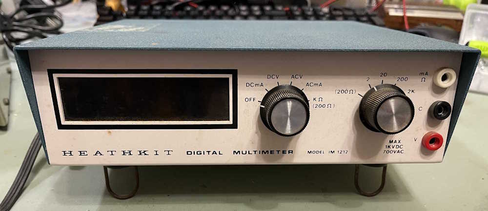 One of the things I picked up at the Fort Wayne hamfest was a Heathkit IM-1212 NIXIE DVM. This device was sold as a kit, and was also known as the Bell & Howell IMD 202-2, as well as a DeVry branded unit. They were all the same, with different branding on the front panel.