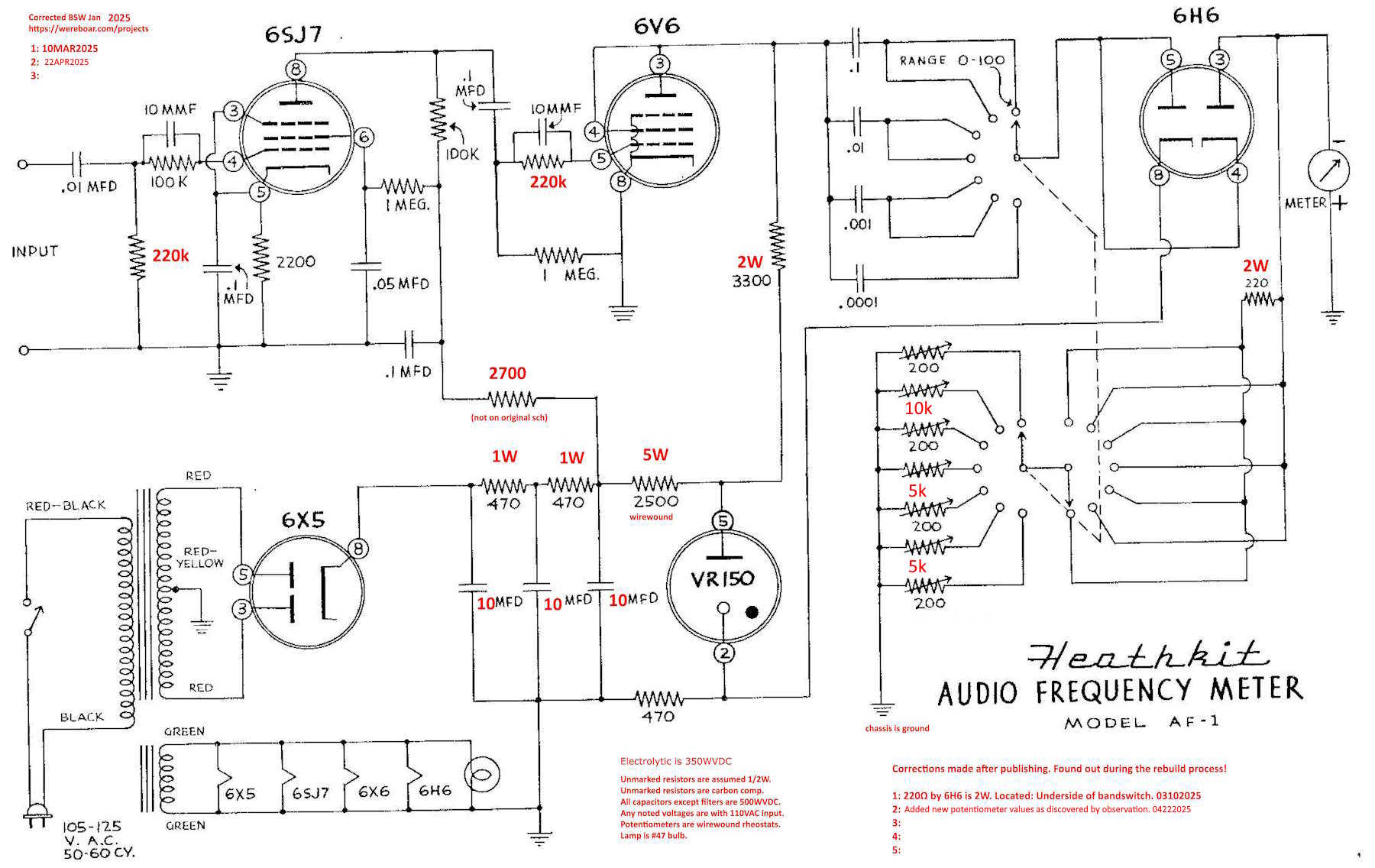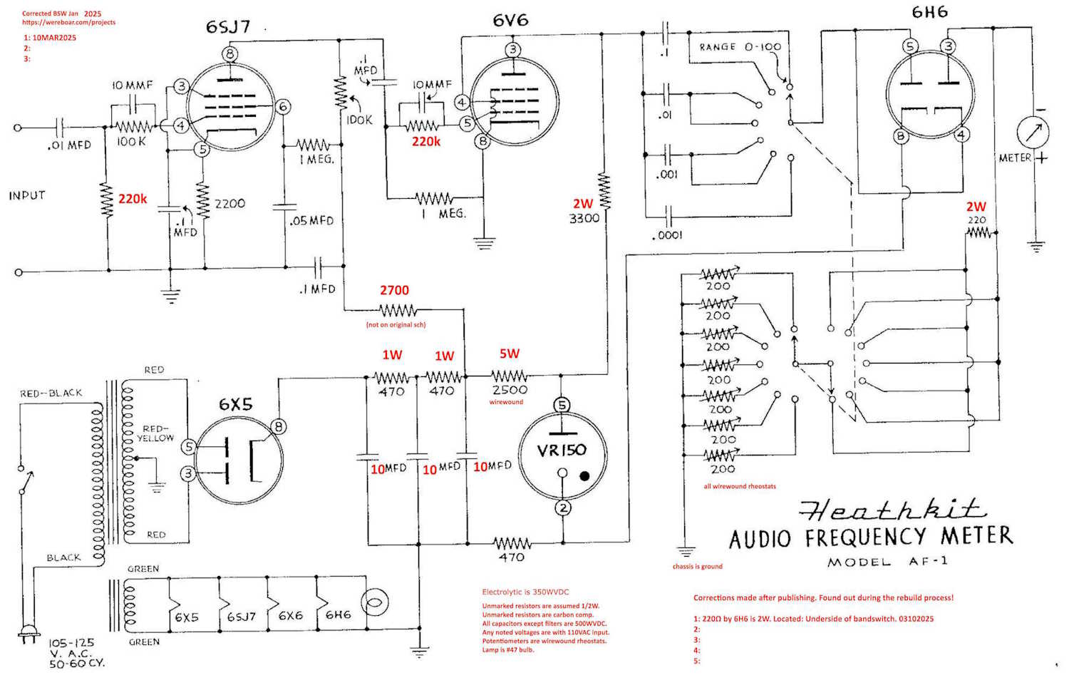 The Heatkit AF-1 Analog Frequency Meter, Part 3 - Schematic Corrections.