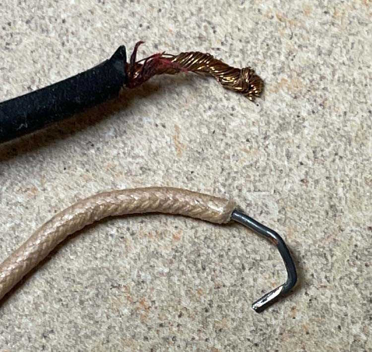 Here’s some wire from the appliance test box I posted about a few days ago. One piece is the line cord, the other some of the internal wiring.