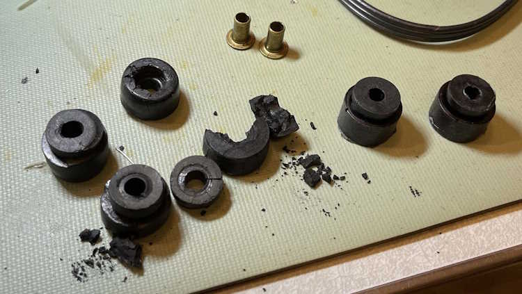 The feet only come with the feet themselves, so you need to punch out the old brass bushings and keep all the hardware. Since I had all 4 feet still, I did that - and the old ones just crumbled to pieces.