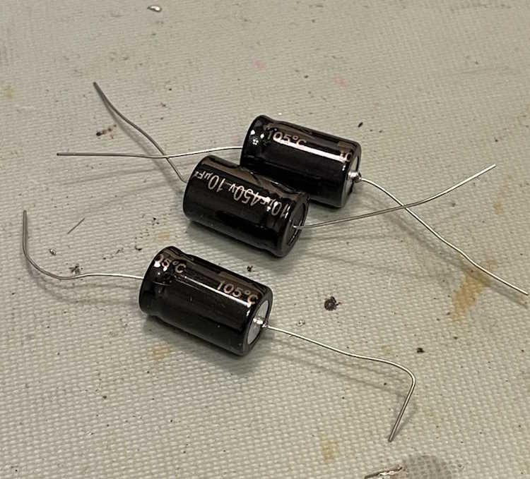 They’re not shorted, so we can just parallel some parts across it. I have some random 10μF caps laying around, and at 450VDC they’re more than enough for this device. As an aside, the schematic I have specifies 20μF, but that appears to have been a pre-print schematic. I have a manual ordered since I wasn’t able to find one online, so we’ll see what that says.