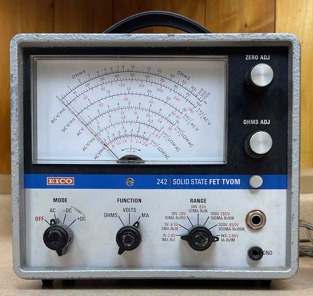 I can’t go to a show without bringing home at least one meter. Unfortunately, this one seems to have some issues, it will zero but not read. I need to open it up and make sure that any batteries left in it aren’t corrodeedoodled all over the place. It had a lot of bad resistors in the divider chain.