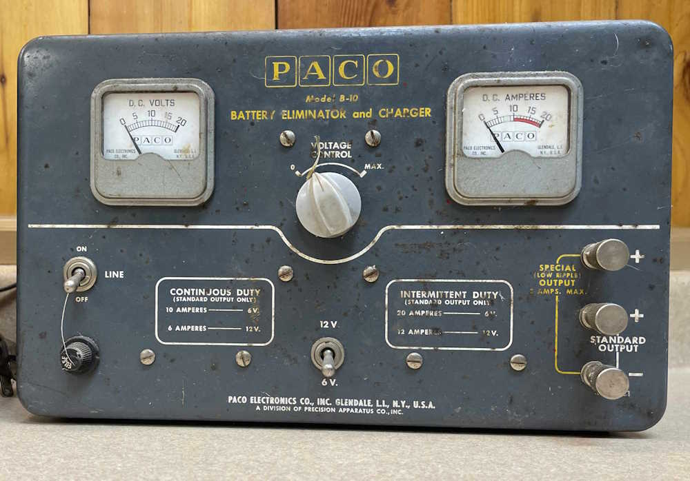 I recently picked up an ancient PACO B-10 “Power Supply / Battery Charger” from the Columbus Hamfest. I wasn’t sure what was in the thing, but turns out there’s not much.