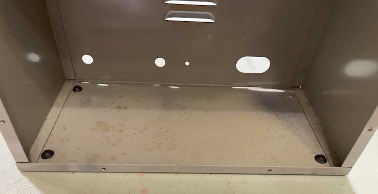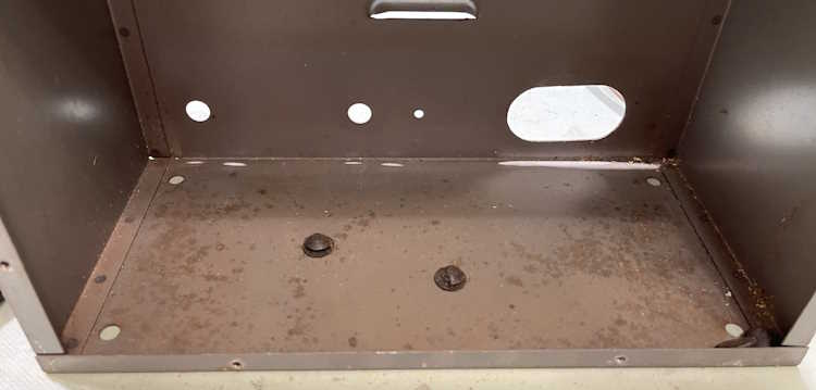 It’s got a little dirt and grime, but overall is in great shape for a garage find. The inside of the cabinet is in equally decent condition. A little surface discoloration, but nothing I’m concerned about.
