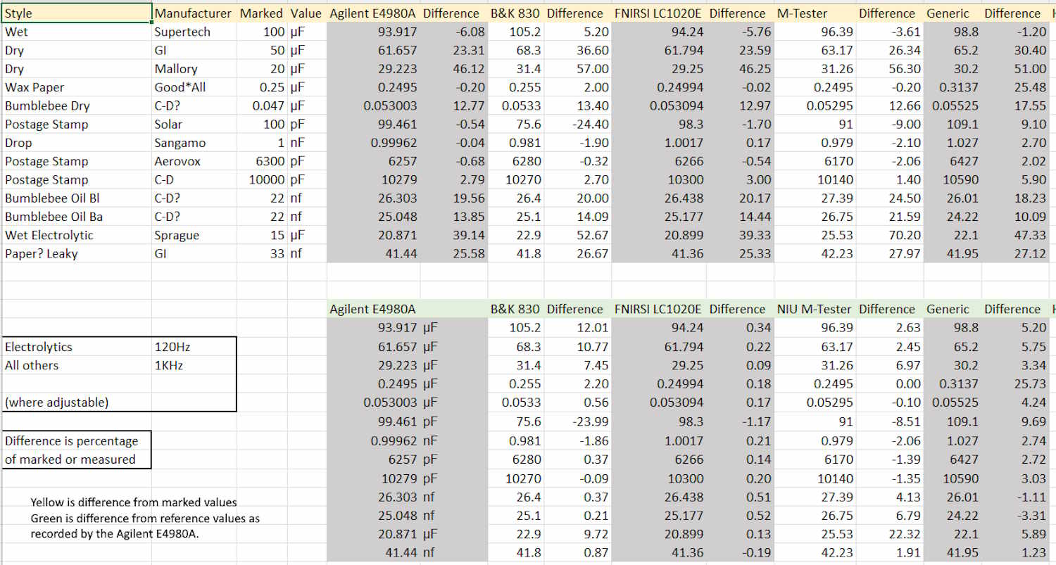 Recently, a forum buddy and I talked about capacitor measurement and devices to do such work. I decided, since I have a number of devices and access to a calibrated measurement device, to check a number of parts to see how well each device matches.