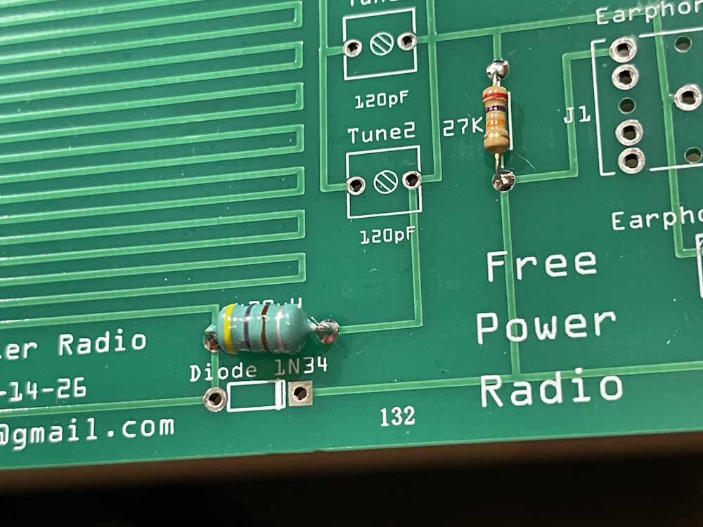 Last was the variable capacitors. Those were soldered in and gently cleaned on back so as not to get any flux in the capacitor itself. Note that you’ll need a very thin, small flatblade to turn these. It’s ideal for setting a station and forgetting it.